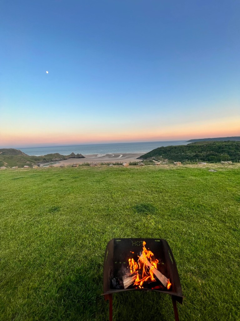 Three Cliffs Bay Campsite is a spectacular coastal escape on the Gower Peninsula, with sweeping sea views right from your pitch. Just a short walk leads you down to the famous Three Cliffs beach, where golden sands meet dramatic limestone cliffs and rolling dunes. The site is dog-friendly and laid-back, with good facilities, a small shop, food trucks and plenty of space to unwind. Whether you’re heading out on the coastal path or simply soaking up the view, Three Cliffs Bay strikes the perfect balance between wild beauty and a welcoming base for your stay. It can get windy up on the cliff so take warm clothes!