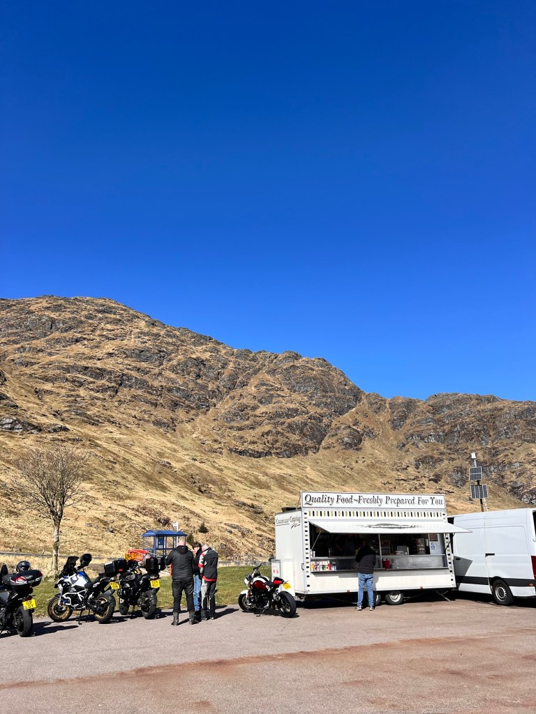 - The rest and be thankful point at Cairndow. When we stopped there was a van serving haggis in a roll – delicious food with a stunning view!