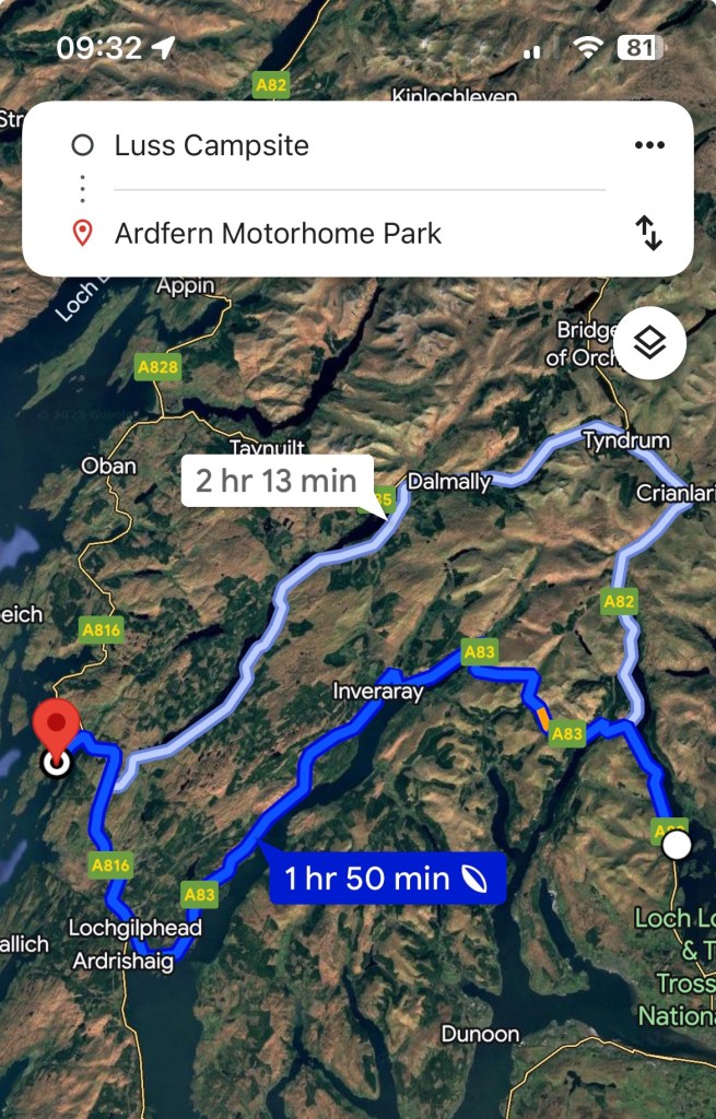 Ardfern Motorhome Park (2hrs from Luss but make sure you take longer and just enjoy the epic drive!!! 🤩)