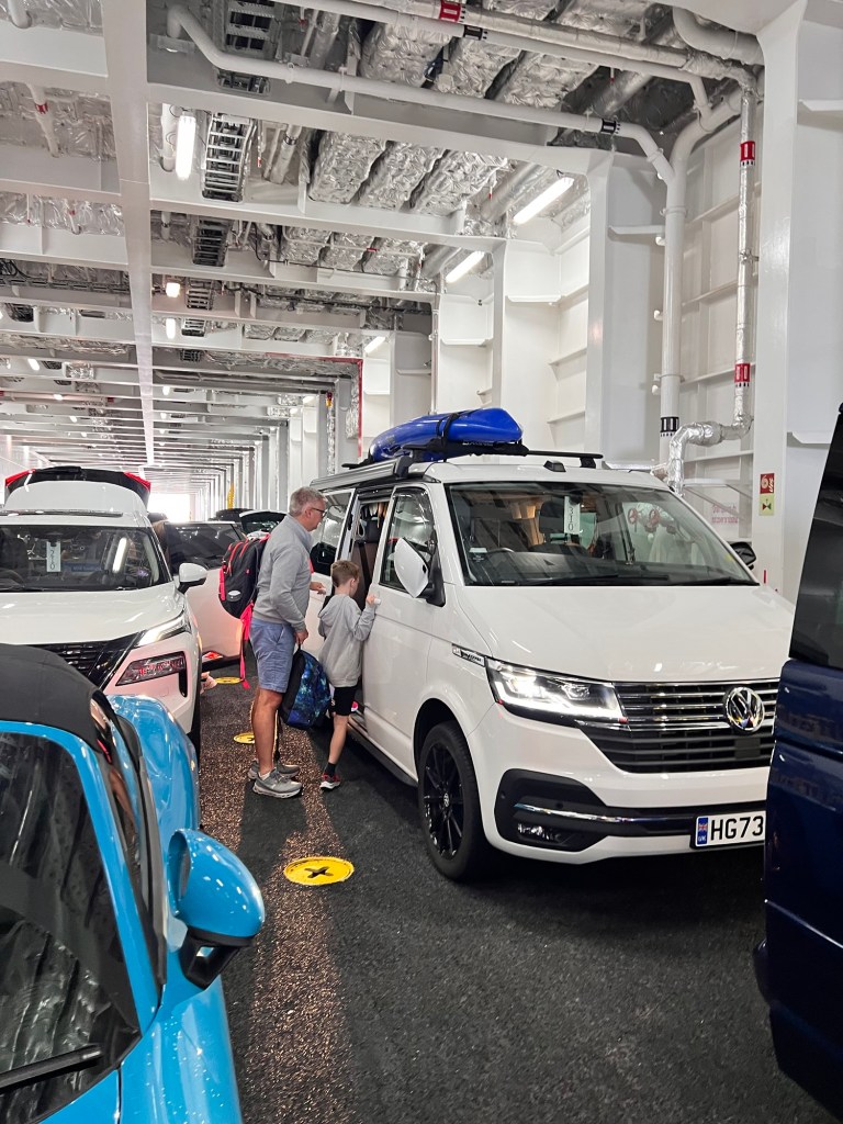 Tip: If you have a campervan with a roof rack you will just need to manually change the height of the van in the booking, including rack load. Currently you cannot add a roof rack to a motorhome on the Brittany Ferries website (true of August 2025). We had a VW California, roof bars and a rigid kayak on the roof – we changed the height on the booking to 2.6m. This is so you can be loaded into the correct part of the garage on the ship (note the space in the pic above!).