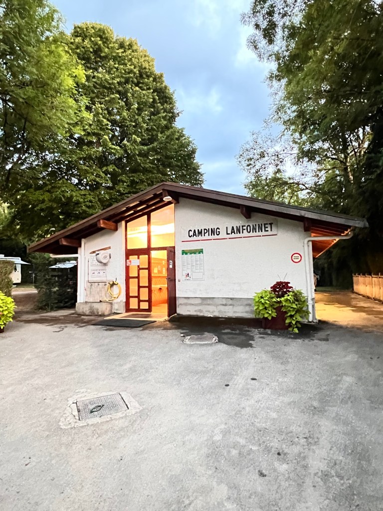Well-kept site with good facilities in the trees. A massive Super U (my favourite French supermarket) is walking distance just across the road.