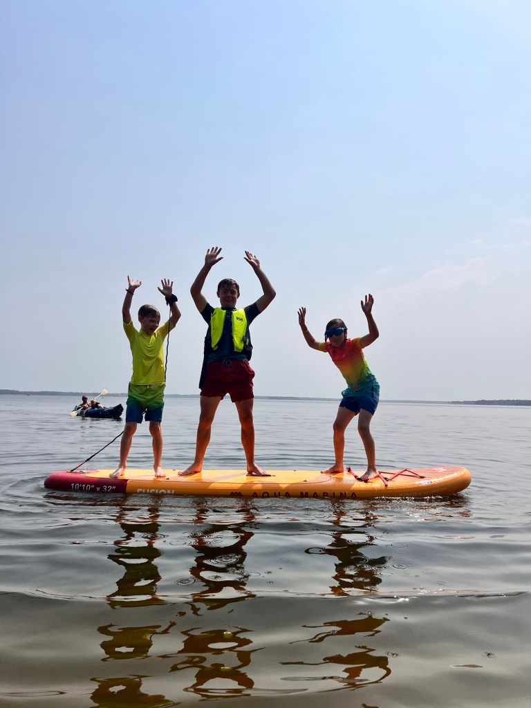 Top tip: you can paddleboard/kayak over to the Huttopia campsite beach (takes about 45 mins) for a change of scenery, or to the little island in the middle to explore an old chapel.